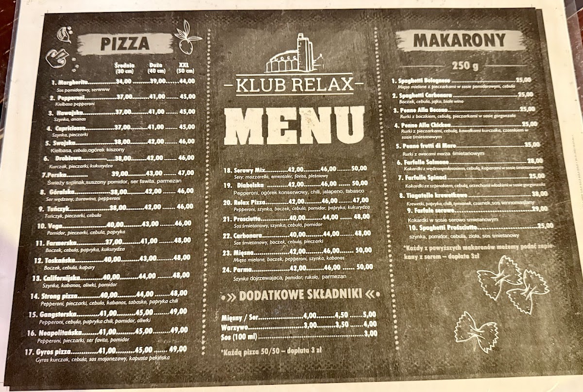 In conclusion, Klub Relax Pizzeria is more than just a place to eat; it's a community hub where flavor meets affordability in an appealing setting. If you're in Warszawa, don't miss out on indulging in their delectable pizzas and pastas—your taste buds will thank you!